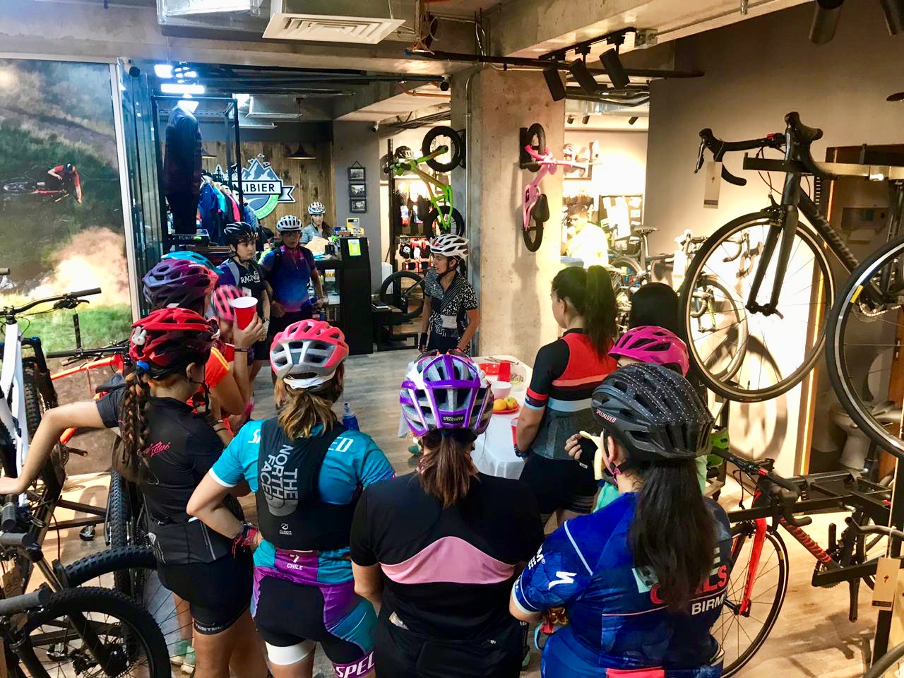 Iniciamos la actividad con un rico desayuno donde tuvimos la oportunidad de conocernos, la bienvenida la realizó Marcelo Palacios -dueño de la tienda-, seguimos con una breve presentación mía agradeciéndoles la asistencia a las chicas. Me sorprendí con cada historia del porqué nos iniciamos o nos encantamos con la bici. Conocimos historias de mujeres valientes y power, que una vez que se subieron a una bici nunca más se bajaron, todas con distintos objetivos, unidas por la misma pasión y felices.