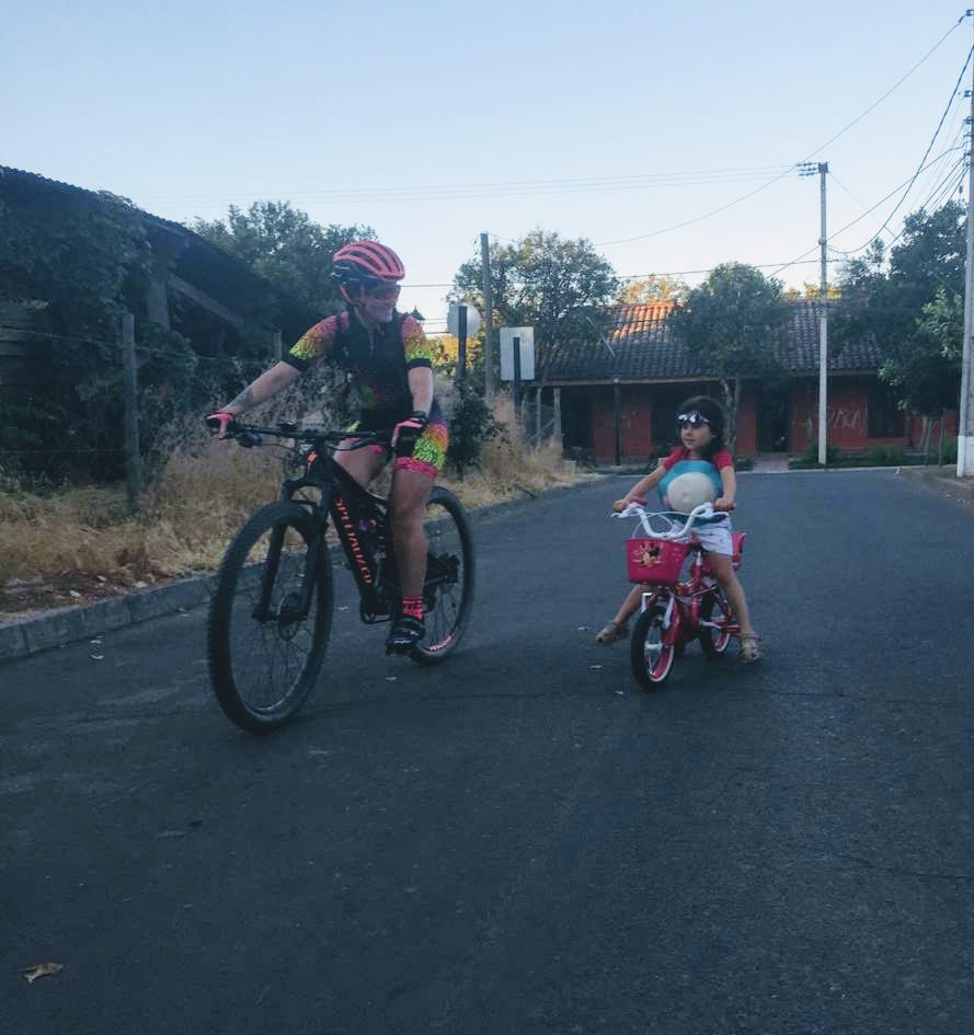 Al momento de nacer mi hija las cosas cambiaron un poco, ya que no tenía el mismo tiempo y todo era un hermoso caos, pero con el correr de los meses y con esa magia que entrega la maternidad, de sentirnos más fuertes, poderosas, organizadas e invencibles, generó mucha voluntad en mi a pesar de varios factores en contra en el plano familiar. Al año de Rafa nos quedamos las 2 y la Bici que me daba energía para seguir.
