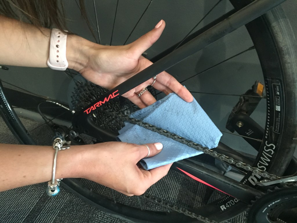 Recomendamos limpiar la cadena con un paño de algodón, lino o microfibra que no sea de papel para que no deje residuos en la cadena. El paño debe estar humedecido con algún tipo de desengrasante para quitar el exceso de grasa.
