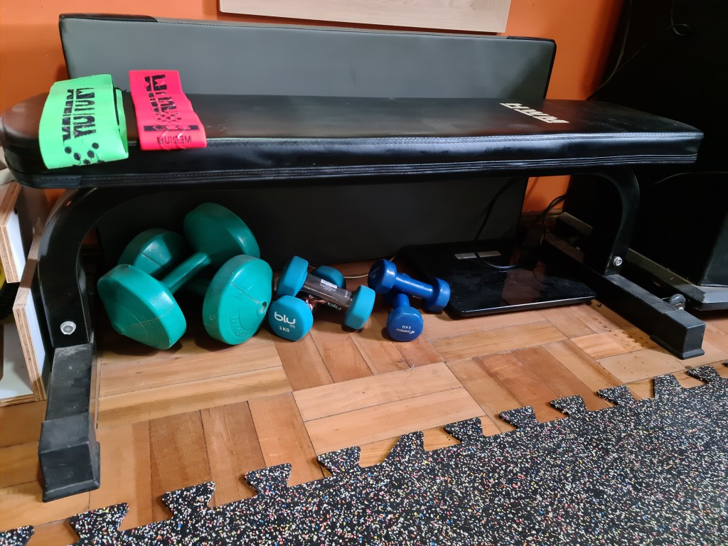 Al entrenar es preferible tener todo cerca, por lo que recomiendo tener alguna repisa o mesa para mantener todo lo que necesites durante tu entrenamiento, incluye comida, agua, teléfono, toalla, etc.