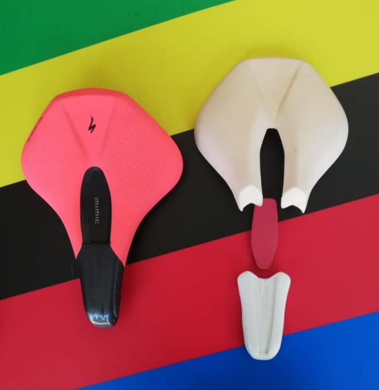 Como dice su nombre (Mimic, que significa imitar), el sillín tiene una parte blanda que imita los tejidos generando equilibrio según la presión que vayamos ejerciendo sobre éste. En palabras simples, se reduce la presión al estar en contacto dos tejidos blandos, y no uno blando (labios) con uno rígido (otro sillín).